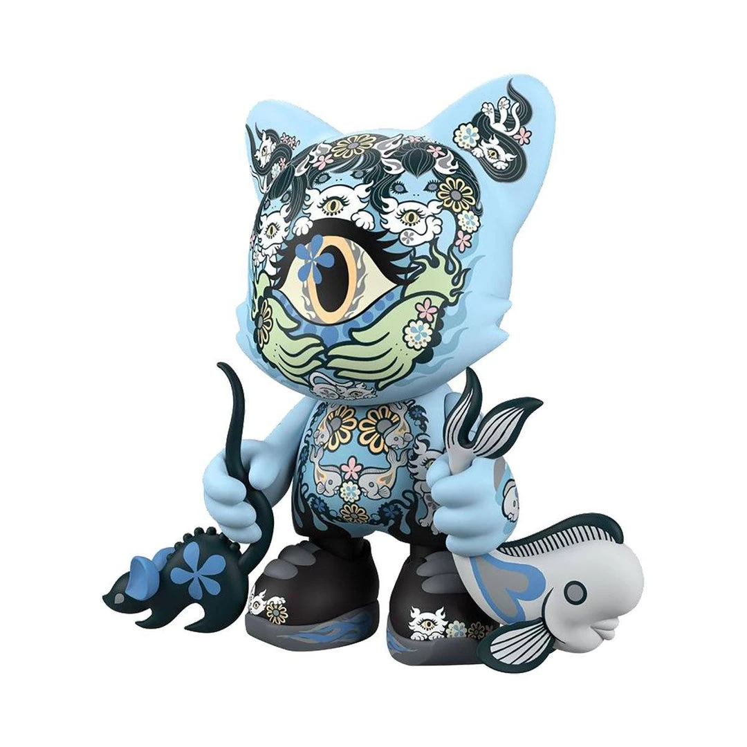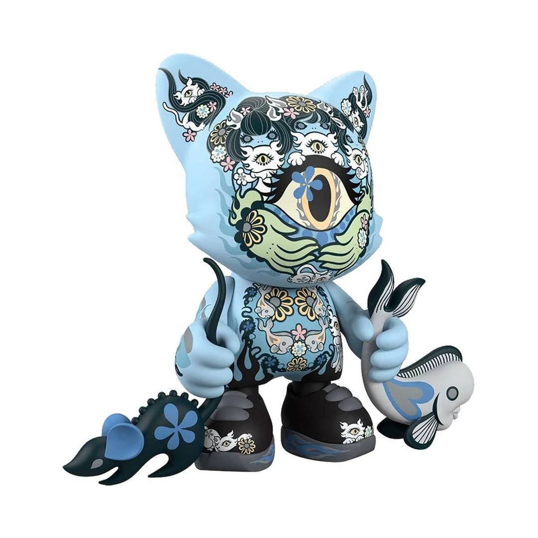 Legendary manga artist Junko Mizuno’s “Azure Ailurophile” SuperJanky is 8-inches of bewitchingly beautiful blue. The second colorway of the “Ailurophile” SuperJanky series will captivate cat comrades with her vivacious vinyl beauty. “Azure Ailurophile” comes with f**ked up fish & murderous mouse accessories, guaranteed to entice friendly felines.Â