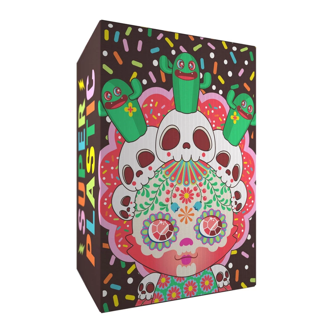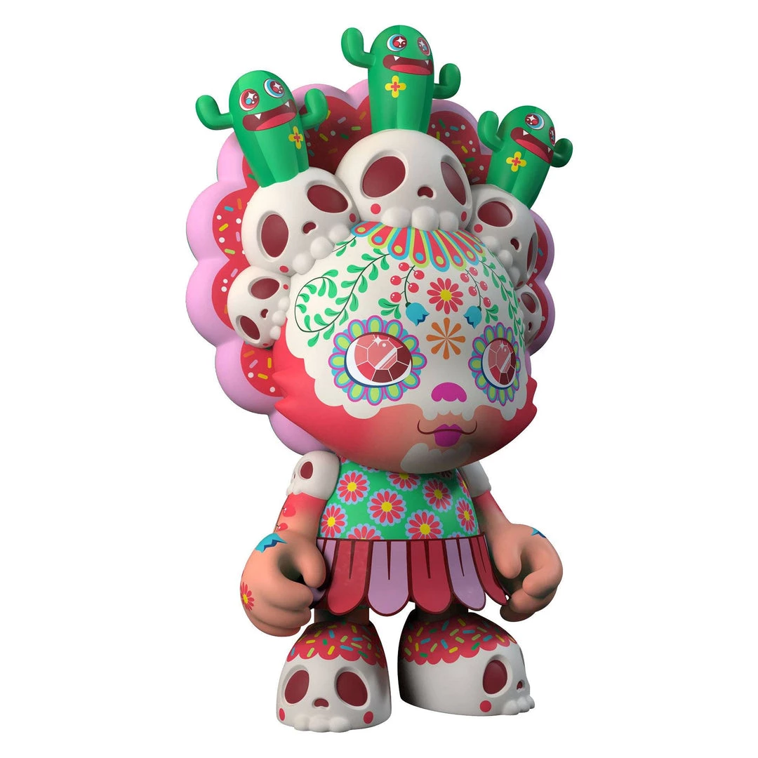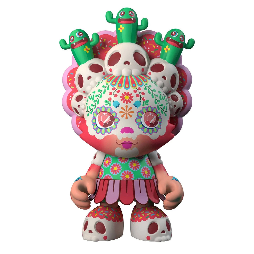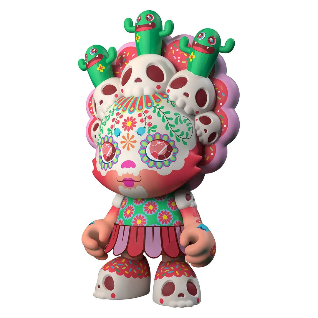 DEATH NEVER TASTED SO GOOD. Caramelaw’s FIRST 8” SuperJanky is more toxically tasty than a candy store in Chernobyl. “CANDIVERA” has CACTI EYEZ that hold ur gaze while her ALL-SEEING SKULLS 💀 plan ur fate (it’s, errr, usually never good 😬 ). Beware her removable head-dress that communicates w/the candy man himself 🍬
