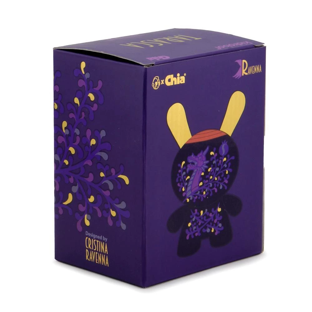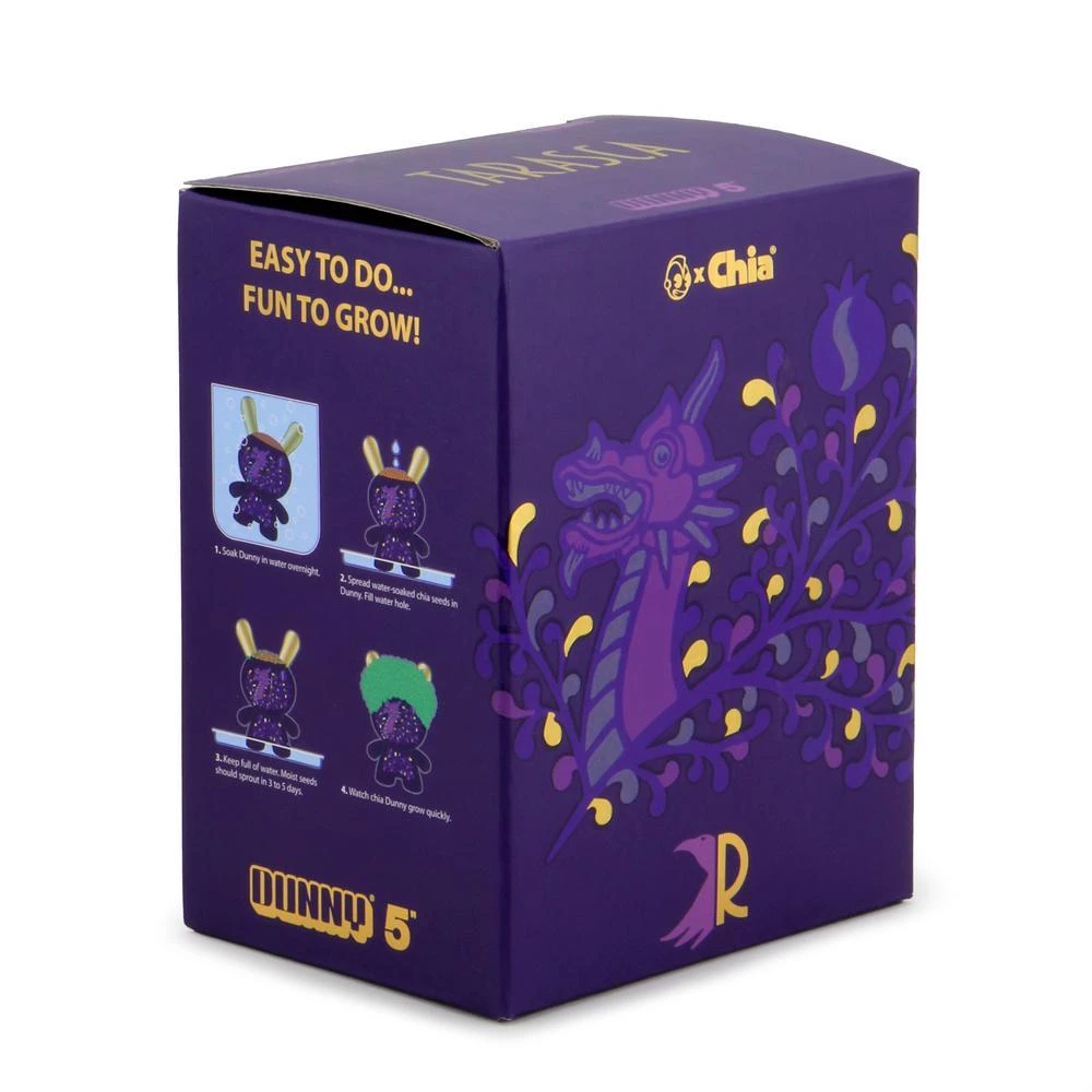Following the sold-out releases of the Jeremyville Let Love Grow 5″ Chia Dunny and the KRONK Buzz Kill 5″ Chia Dunny, Kidrobot brings to life the next terracotta Dunny with the help of Cristina Ravenna and Chia. Spain based toy customizer and artist Cristina Ravenna has lent her unique style to the third Chia Dunny. This interactive terracotta art piece is glazed in a gorgeous Noctis Purple color with vine and dragon details to add elegance and nature to your Dunny collection. Like any Chia pet, it’s up to you to care for this collectible and help the Chia grow the signature chia hairdo with the enclosed chia seeds.