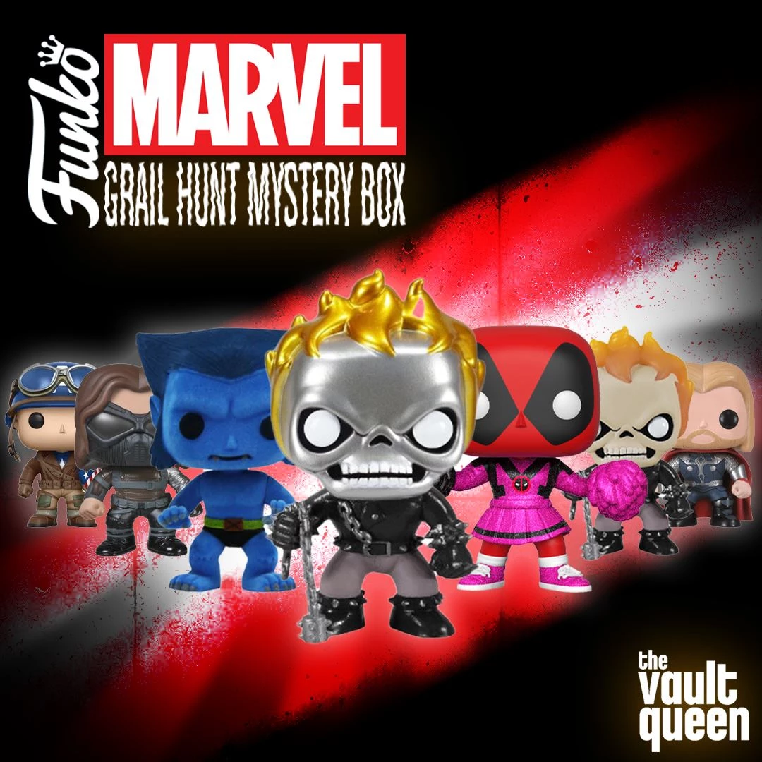 Each $30 mystery box will contain two (2) Marvel themed Funko Pops with grails and super grails randomly sprinkled in!
